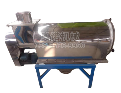 4、待各机转向按标示无误后,先启动引风机,约几秒钟后,启动气流筛,检查各处连接部位是否漏气(包括内漏气)、机器有无特殊响声(如撞击声)。运转正常后,将绞龙出口用布袋包好,人工向主机加料口加入少许物料,一般以20-50公斤为宜,加料时间控制在1-2分钟,加料要均匀、连续,物料进完之后,全部停机观察,待筛机停稳后,打开检视门,观察物料过网情况,是否粘网,渣中含粉数量等,若一切满意,关好检视门,正式启动筛分系统,加料量由大到小,最大不超过25公斤/分。需要注意的是:气流筛停稳前,严禁打开外壳上的检视门。